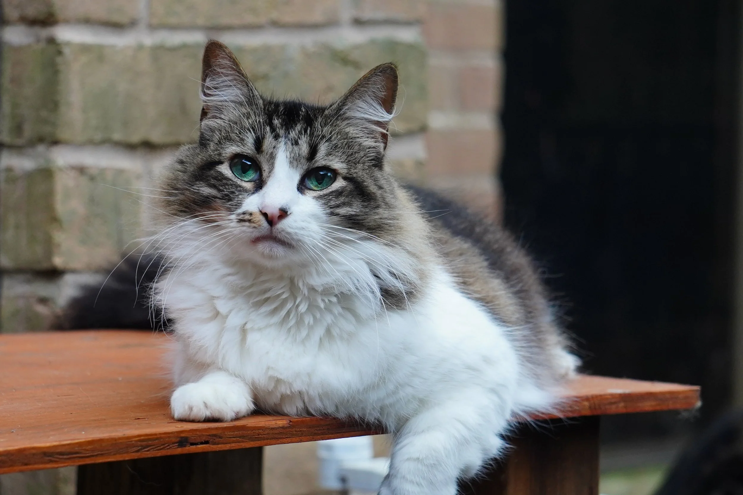 As an adult she is a beautiful girl with a medium length, silky coat, and the most amazingly fluffy tail we have ever seen on a cat! There aren’t nearly enough early picture of her due to all the turmoil we had going on at the time of her adoption. We got quite a few of young adult Parker, and then something happened. We don’t know what it was, but we assume one of the other cats took a disliking to her. She started hiding, trying to get back into the bathroom, and just really being unhappy out in the general population. We moved her into Matt’s office where she started to thrive again. After a while, we tried her in general population, and all was well again. Parker was retested for FeLV as an adult and came up negative! She was almost euthanized before her body had a chance to successfully throw off the virus.